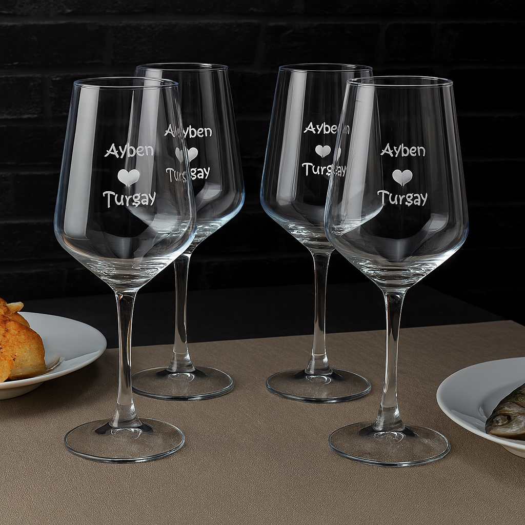 - PERSONALIZATION: Custom laser engraved wine glasses featuring your chosen names with an elegant heart design for a unique, personal touch
